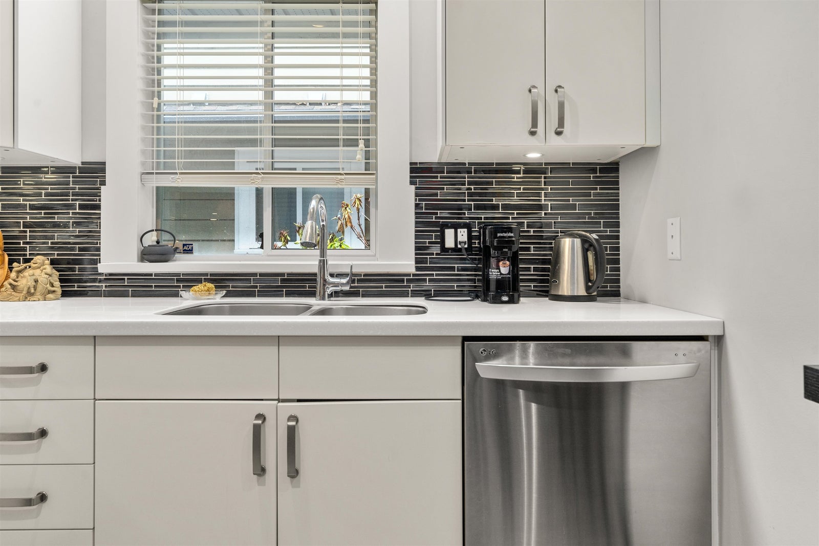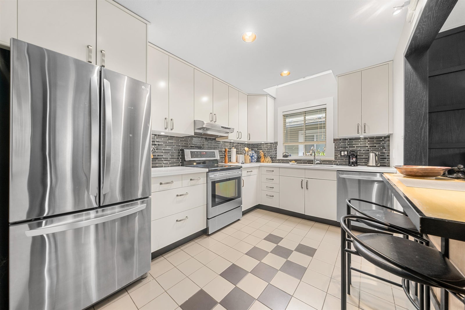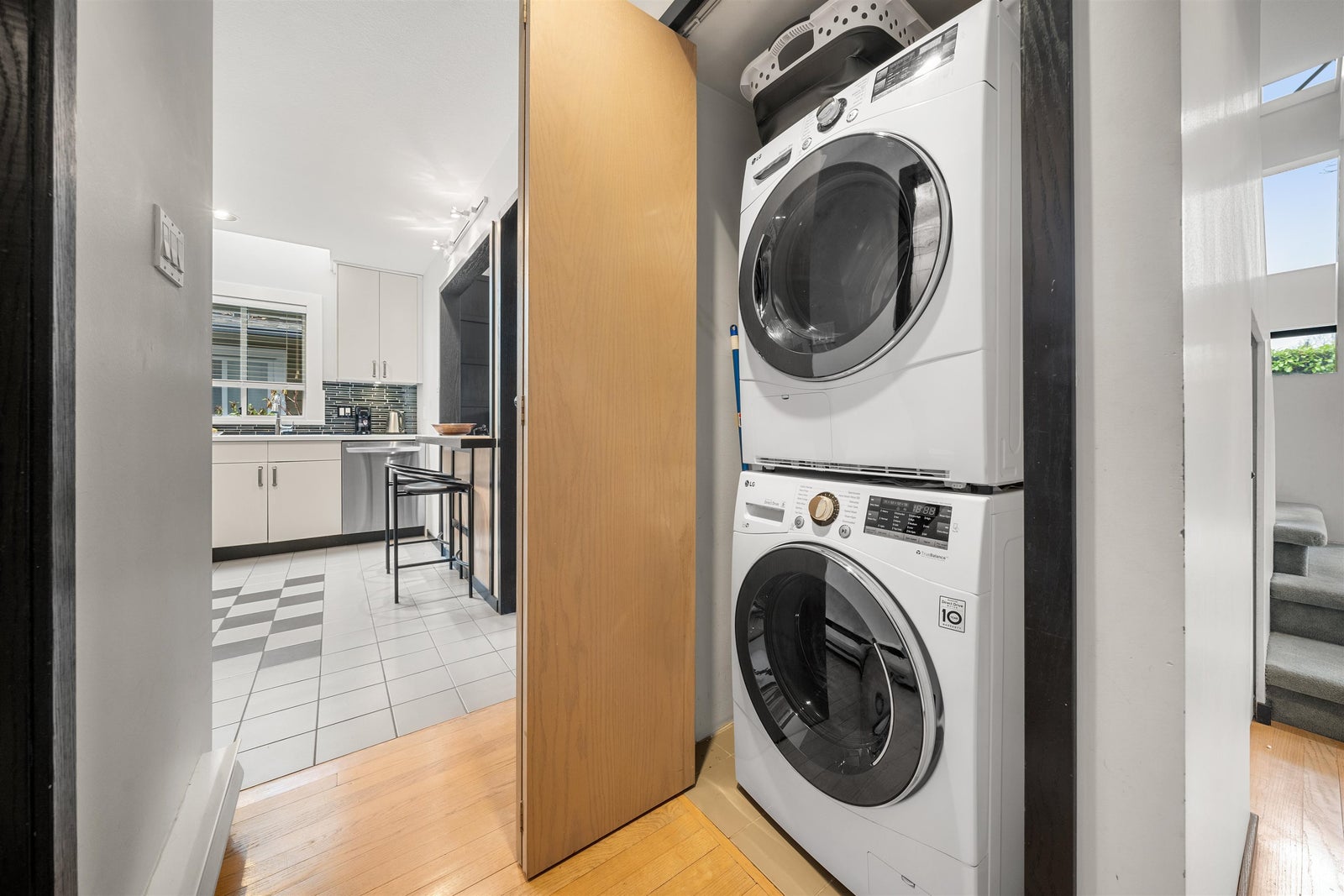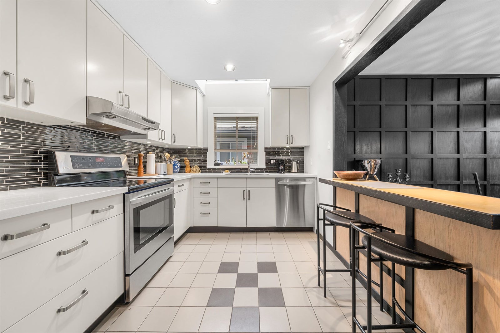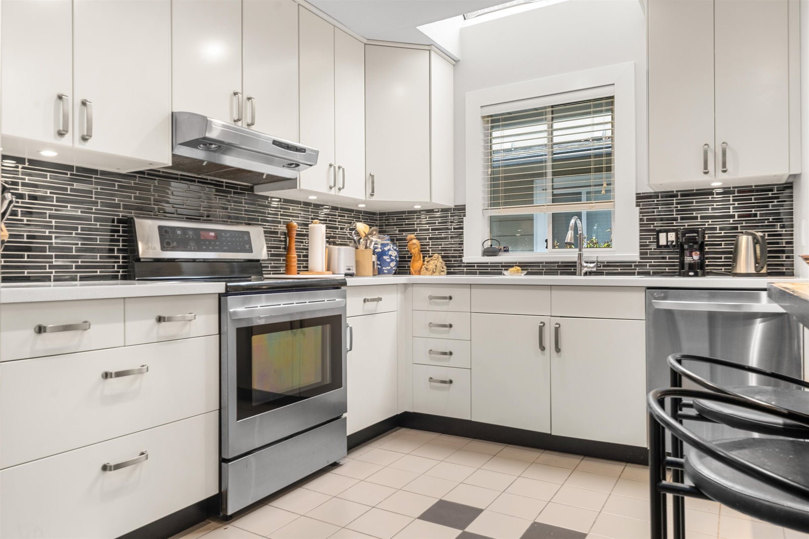 We are proud to present 2894 W 16th, a rare architectural contemporary 3 bed/ 2 bath 1317sqft 1/2 DUPLEX home offering a lovely bright outdoor private patio/yard space with lane access at the rear to a private 193/sqft garage. Located steps to Carnarvon park & elementary school. A thoughtfully laid out bright floor plan w/ a generously sized bedroom on main & 3 pc bath, leading out to a dramatic living room with vaulted ceilings and floor to ceiling glass leading out to a large private patio space. Featuring hardwood though out, wood burning fireplace, updated appliances & kitchen, in suite laundry, large bedrooms and a very well maintained duplex. 1st Showings Feb 27th 5-7pm & Open House Sat 2-4pm