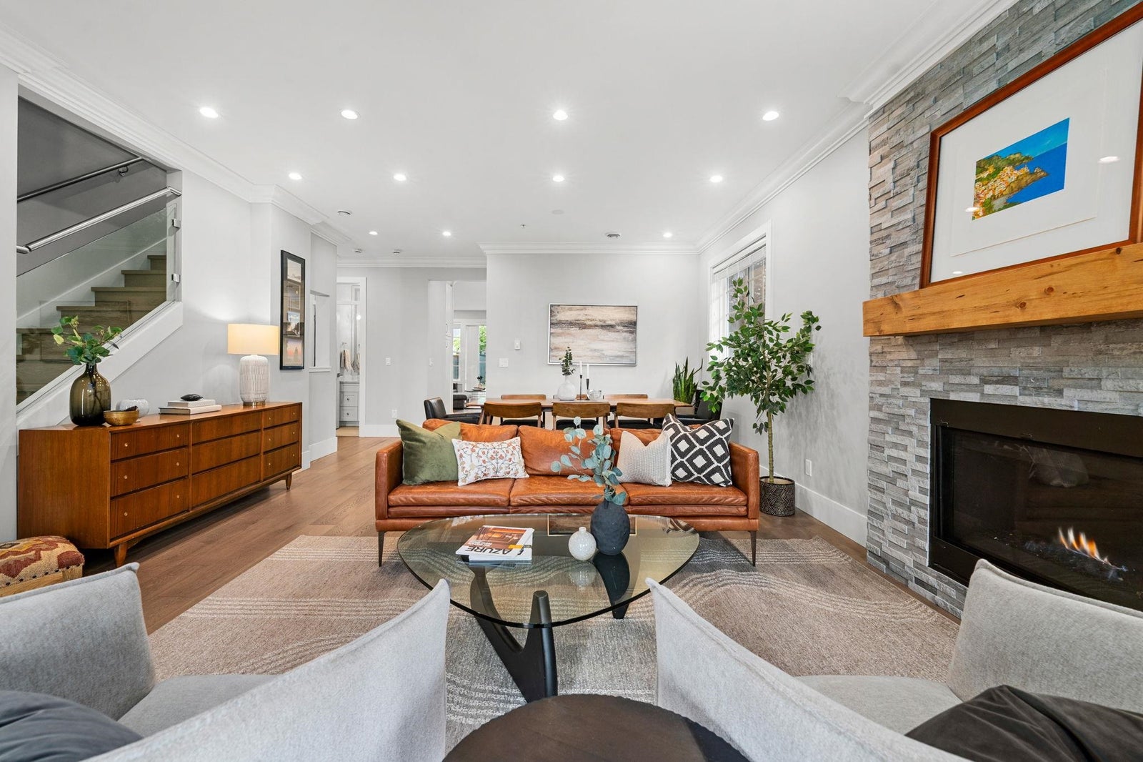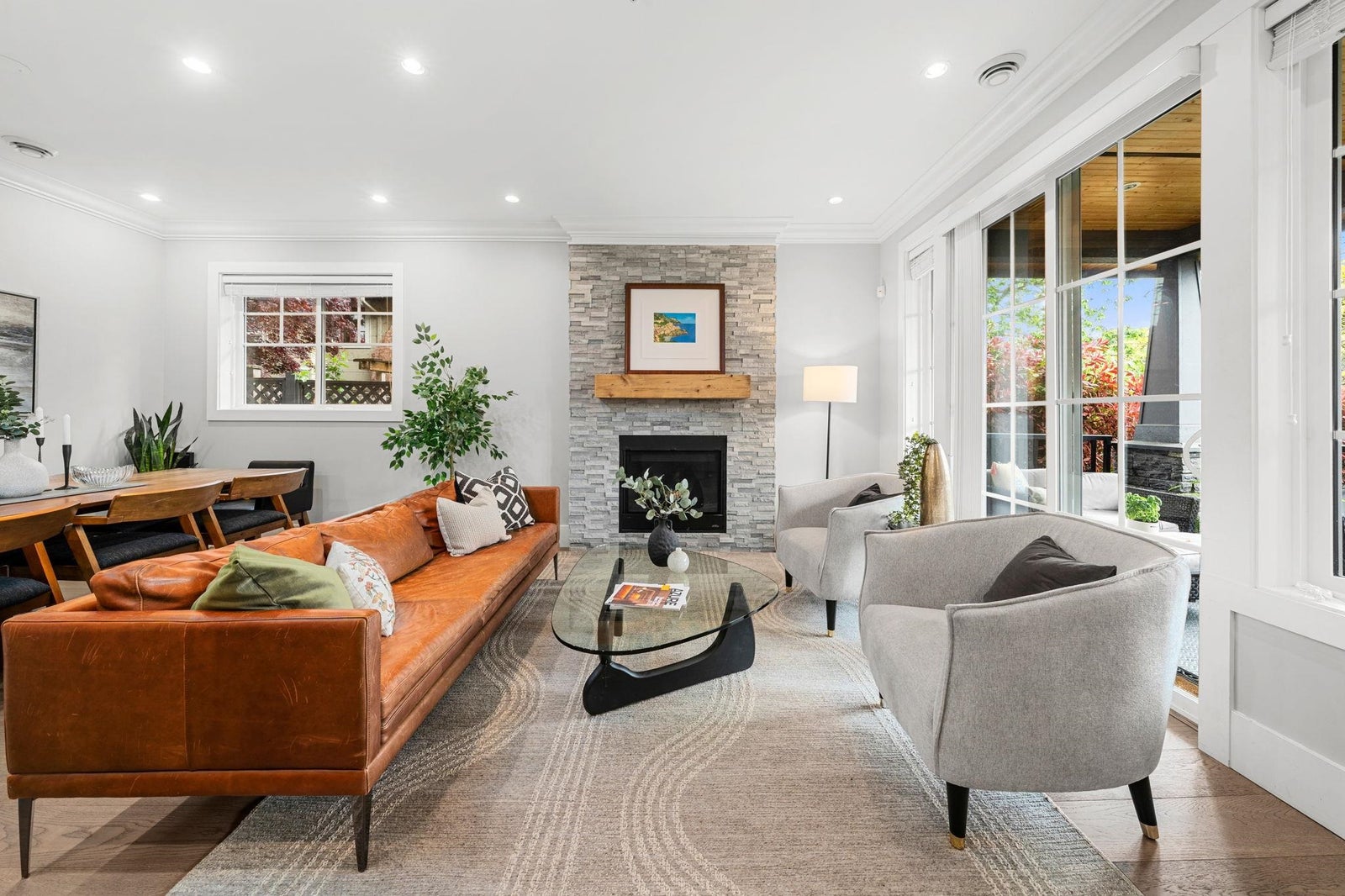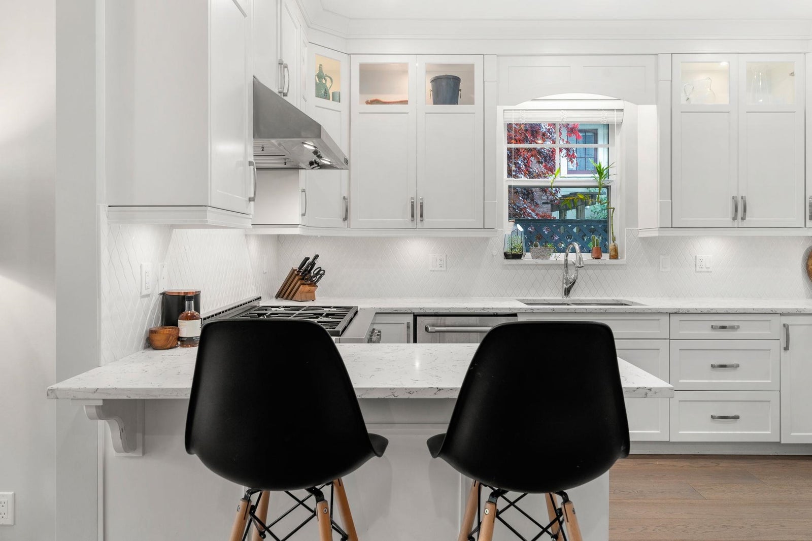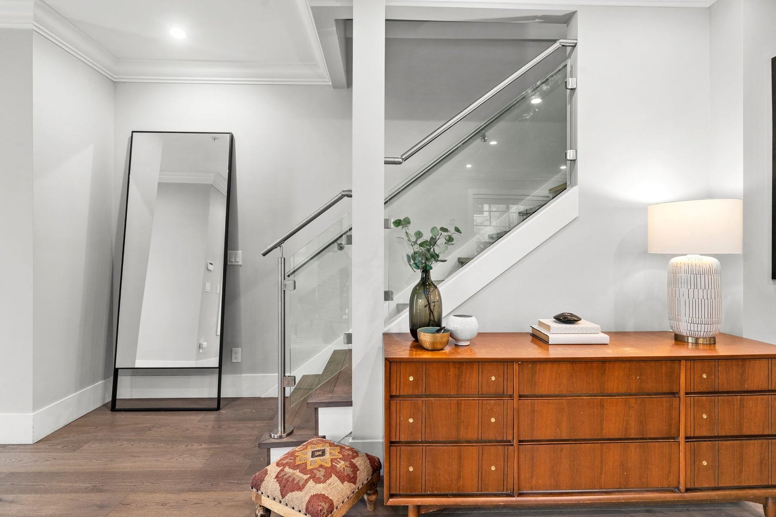 Nestled on a prestigious North Vancouver tree-lined boulevard, steps from Ridgeway Elementary and Andrews on 8th café, this elegantly priced 4-bedroom, 4-bathroom contemporary duplex radiates charm. Warm hardwood floors, in-floor radiant heating, air conditioning, soaring main-level ceilings, an open-plan gourmet kitchen, a private fenced garden, garage, and carport define this idyllic family retreat. The refined layout offers a spacious lower-level recreation room/bedroom and three expansive upstairs bedrooms with vaulted ceilings. BONUS: a 1-bedroom legal suite with separate entry. Contact the Listing Agent to view. Open House: SAT May 24th, 2-4 PM.