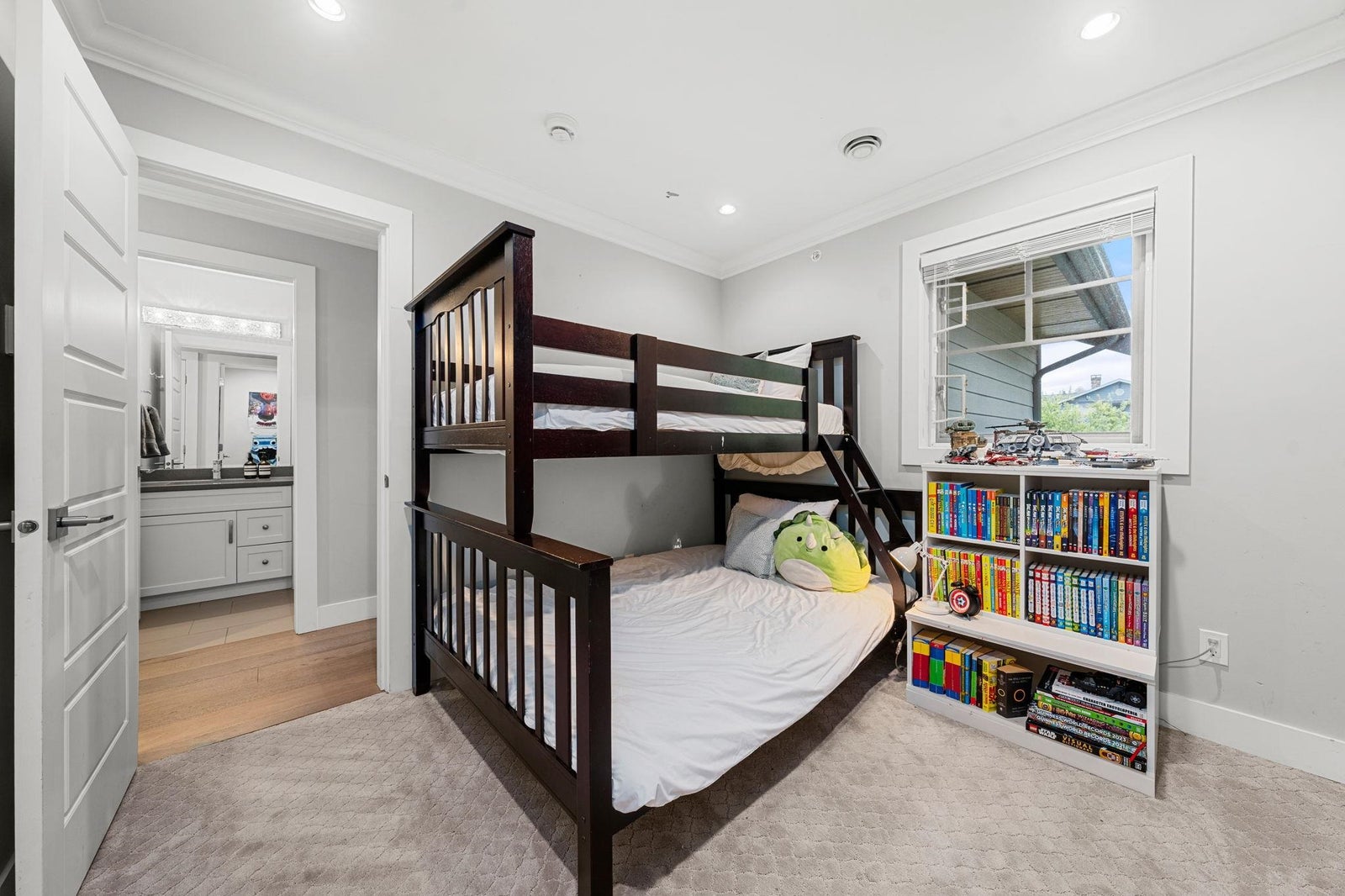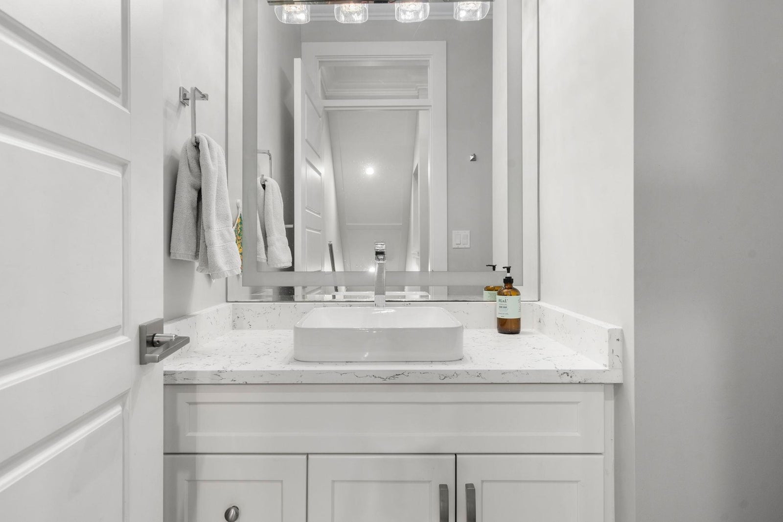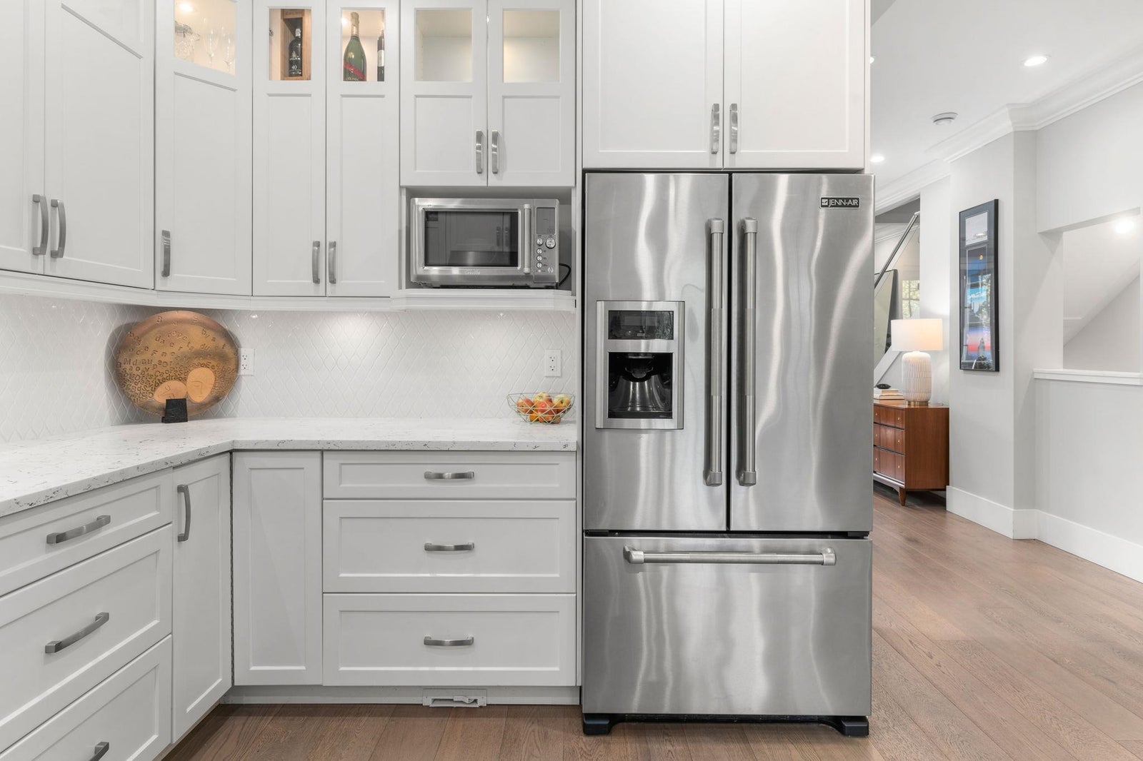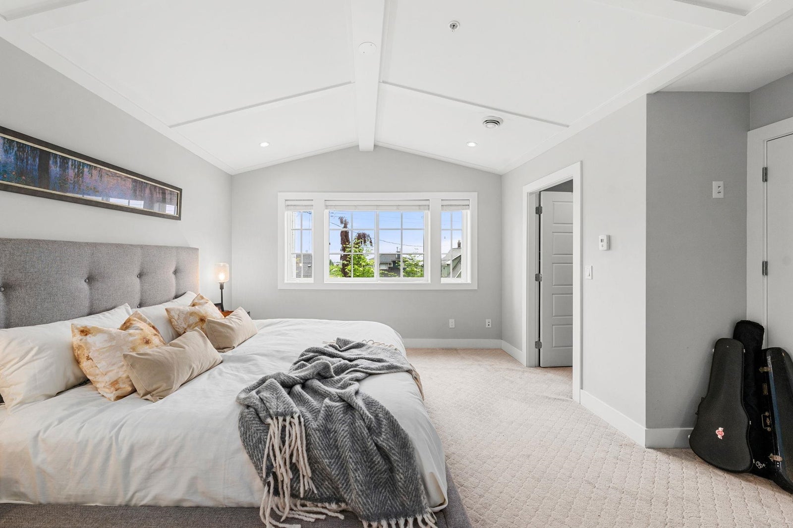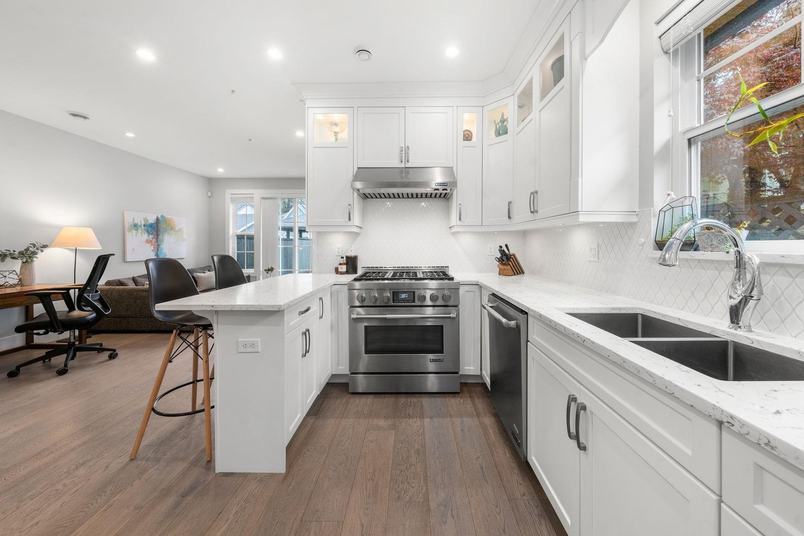 Nestled on a prestigious North Vancouver tree-lined boulevard, steps from Ridgeway Elementary and Andrews on 8th café, this elegantly priced 4-bedroom, 4-bathroom contemporary duplex radiates charm. Warm hardwood floors, in-floor radiant heating, air conditioning, soaring main-level ceilings, an open-plan gourmet kitchen, a private fenced garden, garage, and carport define this idyllic family retreat. The refined layout offers a spacious lower-level recreation room/bedroom and three expansive upstairs bedrooms with vaulted ceilings. BONUS: a 1-bedroom legal suite with separate entry. Contact the Listing Agent to view. Open House: SAT May 24th, 2-4 PM.