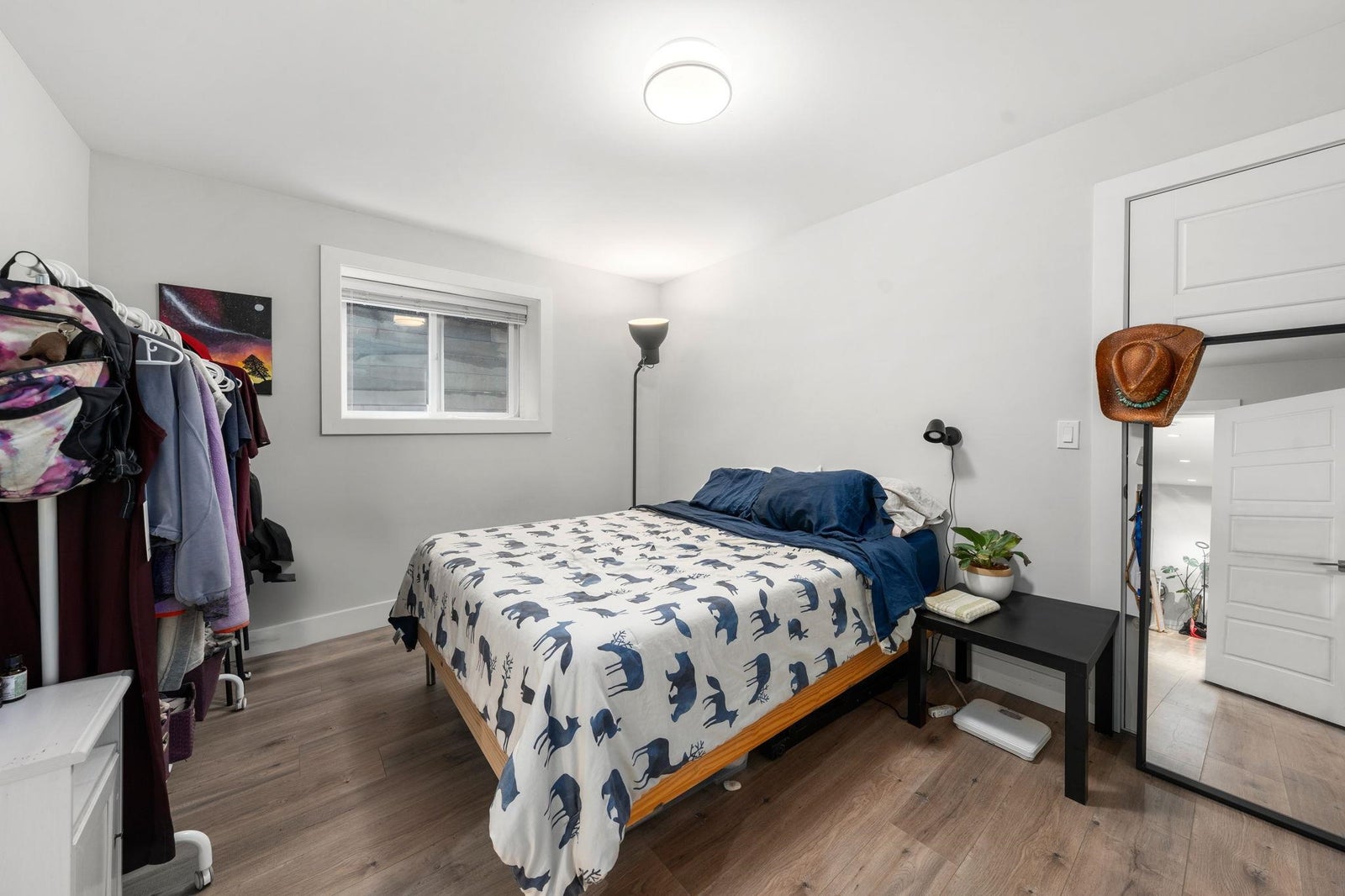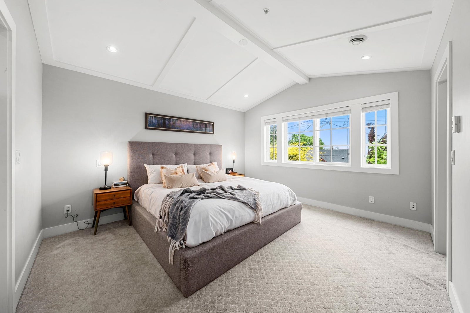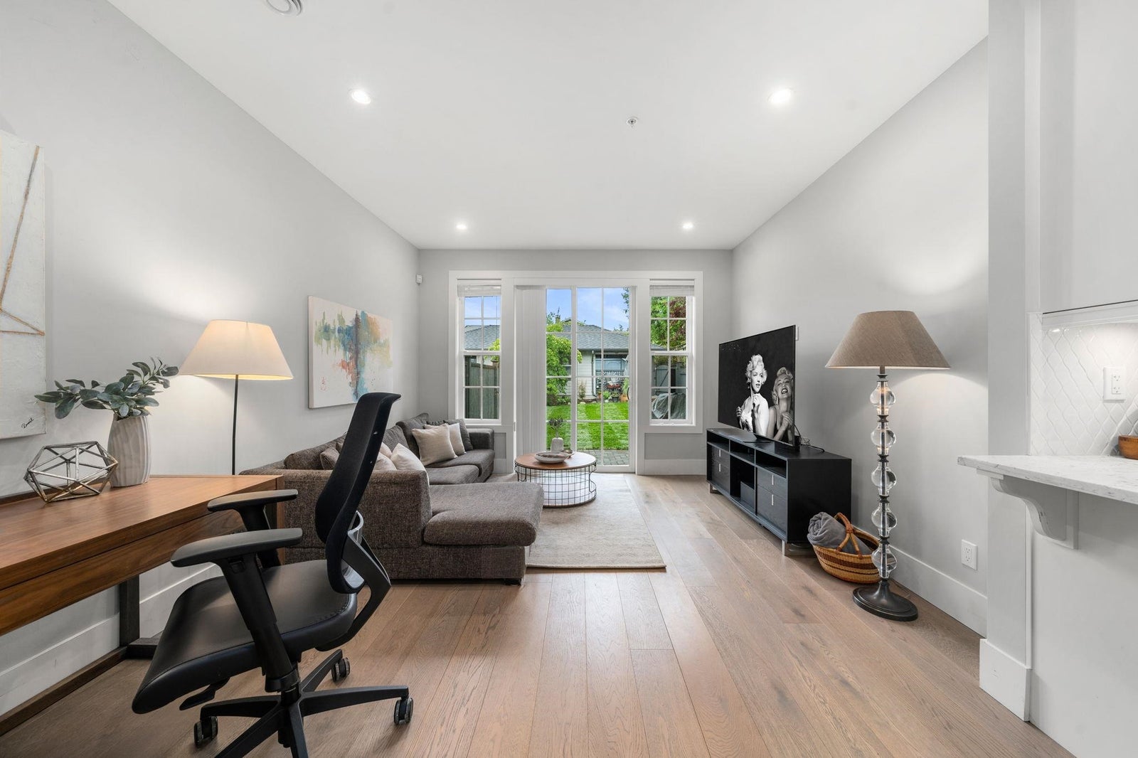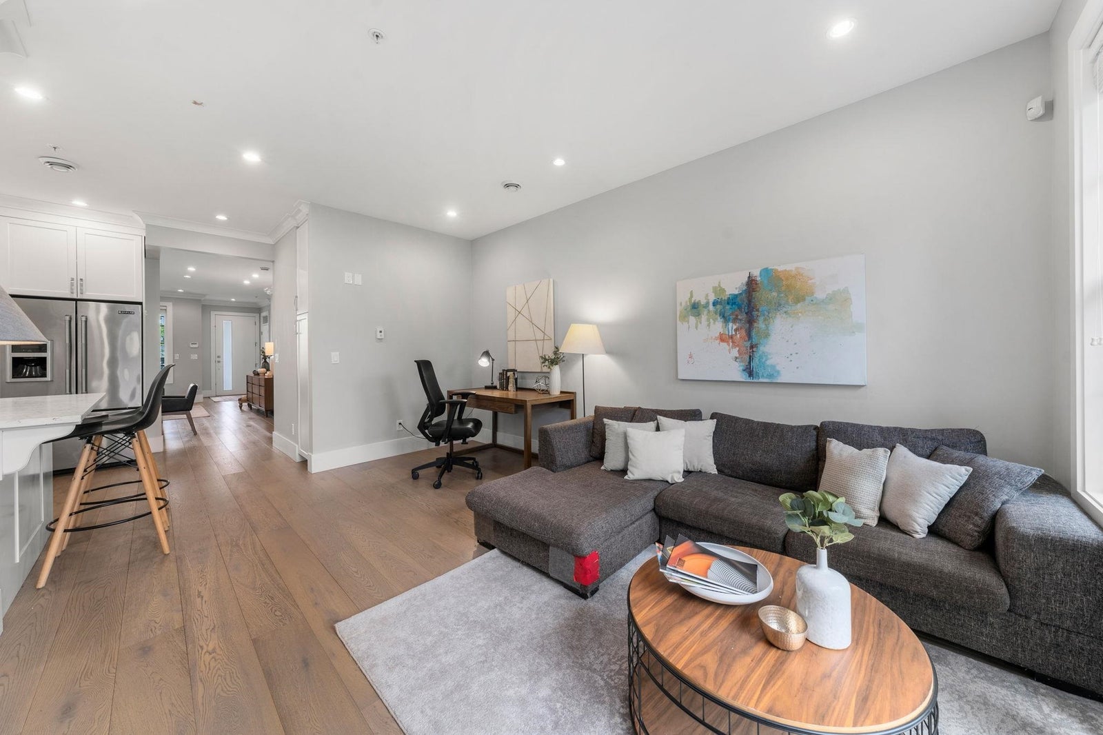 Nestled on a prestigious North Vancouver tree-lined boulevard, steps from Ridgeway Elementary and Andrews on 8th café, this elegantly priced 4-bedroom, 4-bathroom contemporary duplex radiates charm. Warm hardwood floors, in-floor radiant heating, air conditioning, soaring main-level ceilings, an open-plan gourmet kitchen, a private fenced garden, garage, and carport define this idyllic family retreat. The refined layout offers a spacious lower-level recreation room/bedroom and three expansive upstairs bedrooms with vaulted ceilings. BONUS: a 1-bedroom legal suite with separate entry. Contact the Listing Agent to view. Open House: SAT May 24th, 2-4 PM.