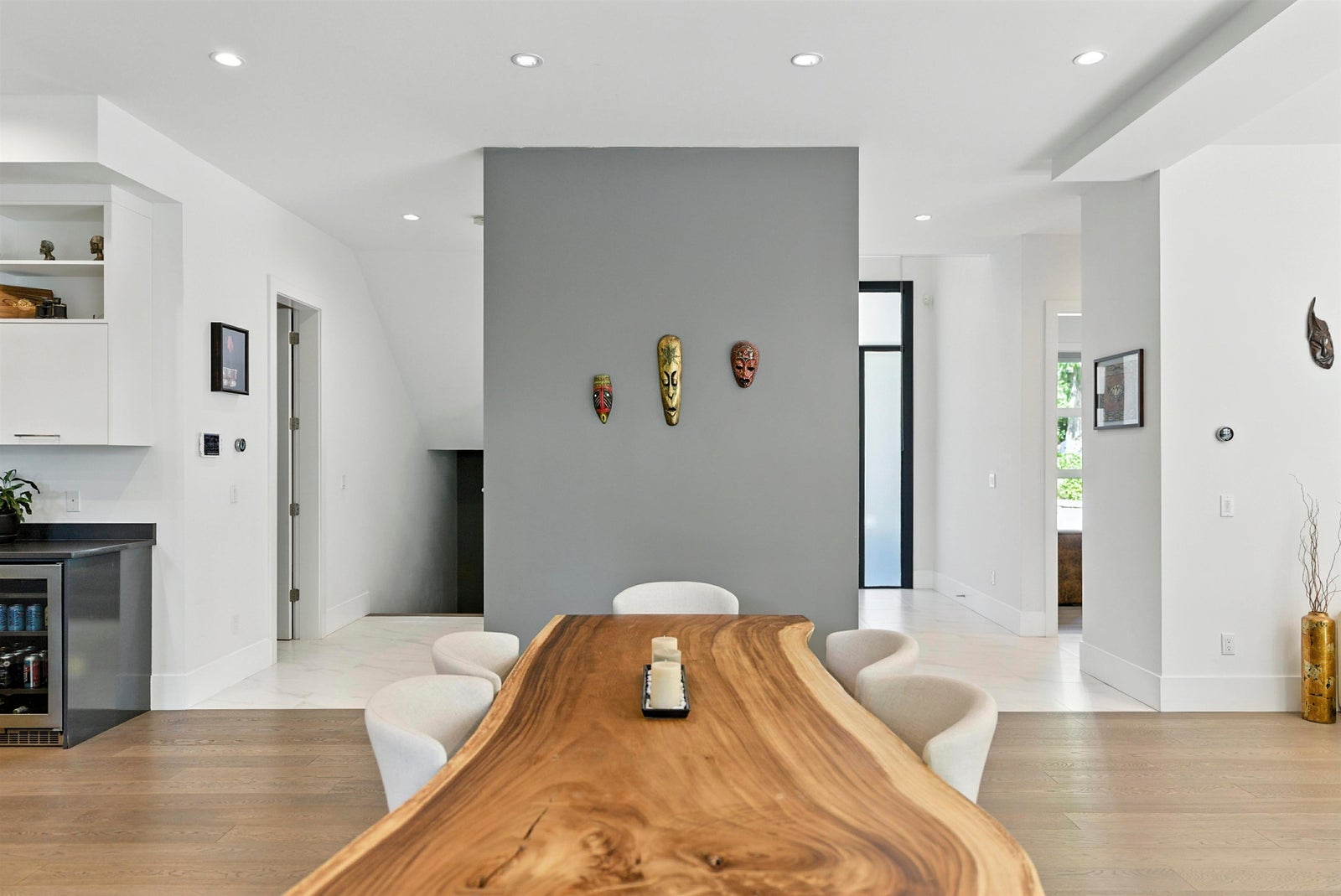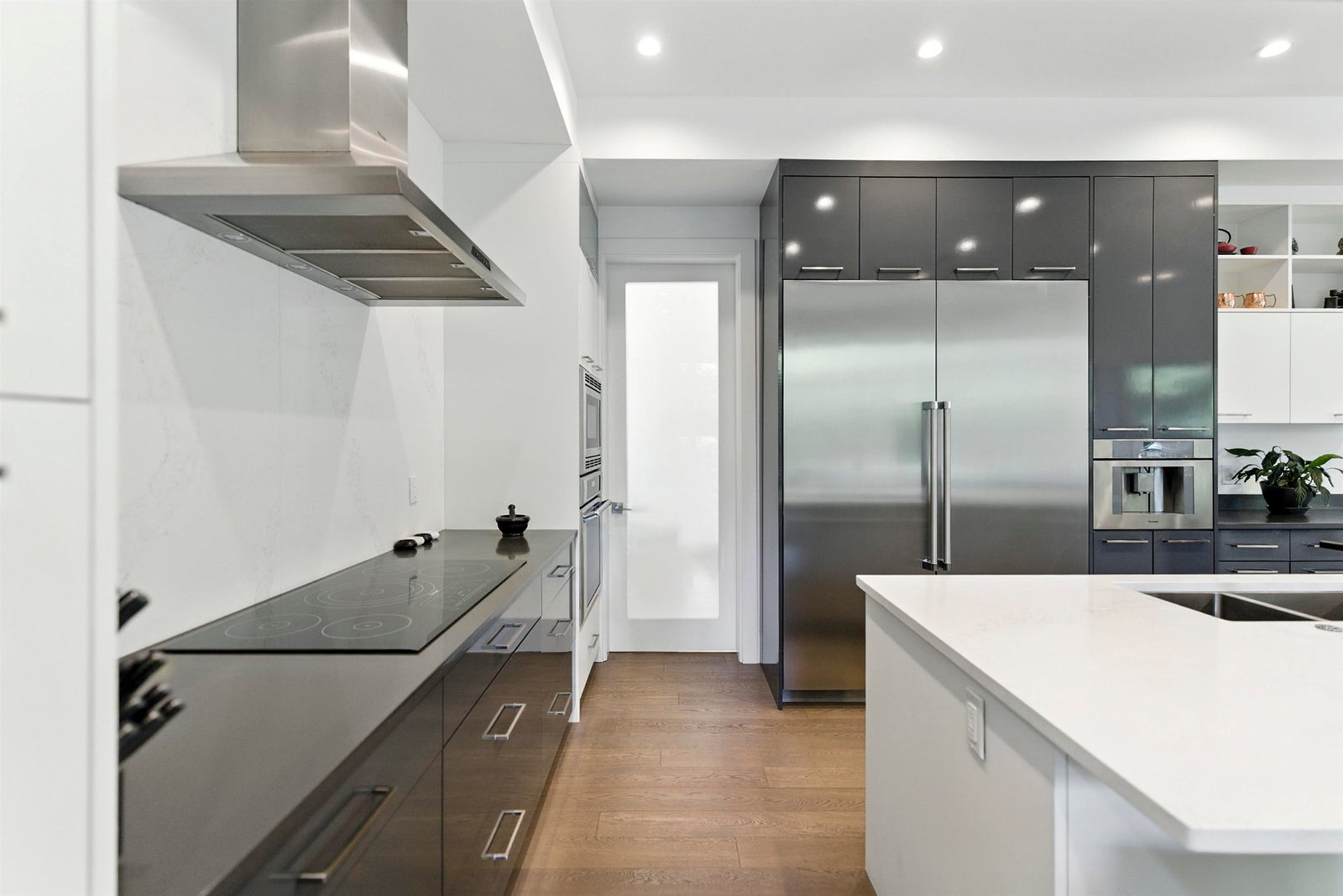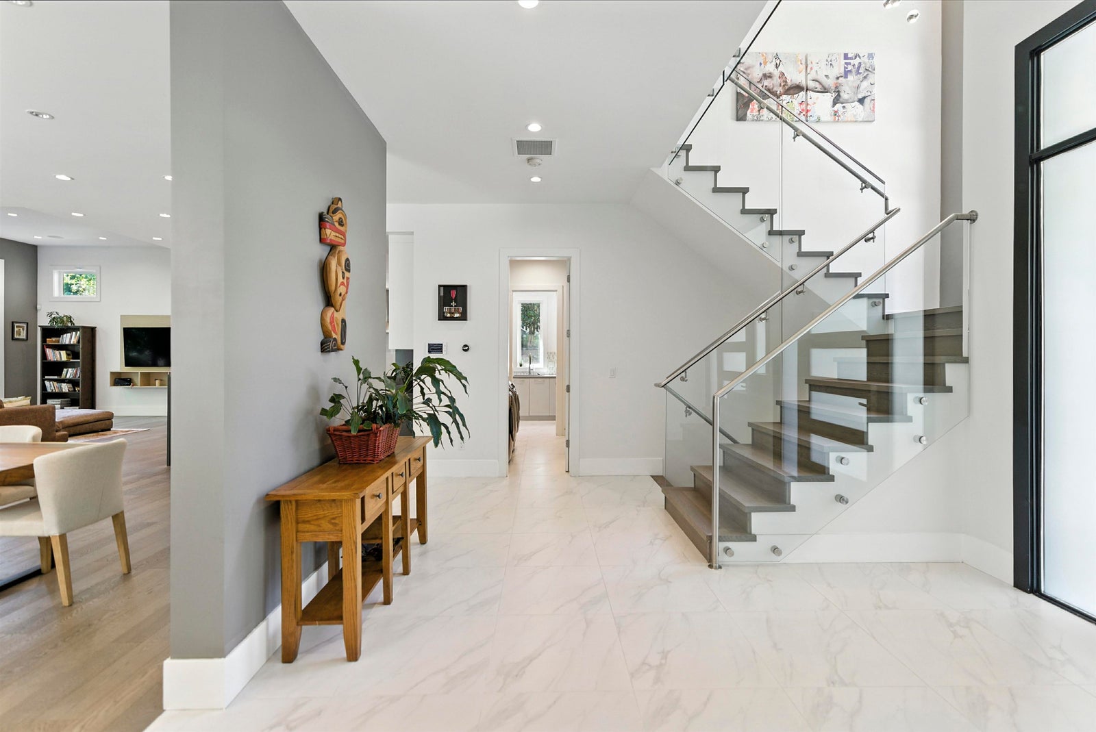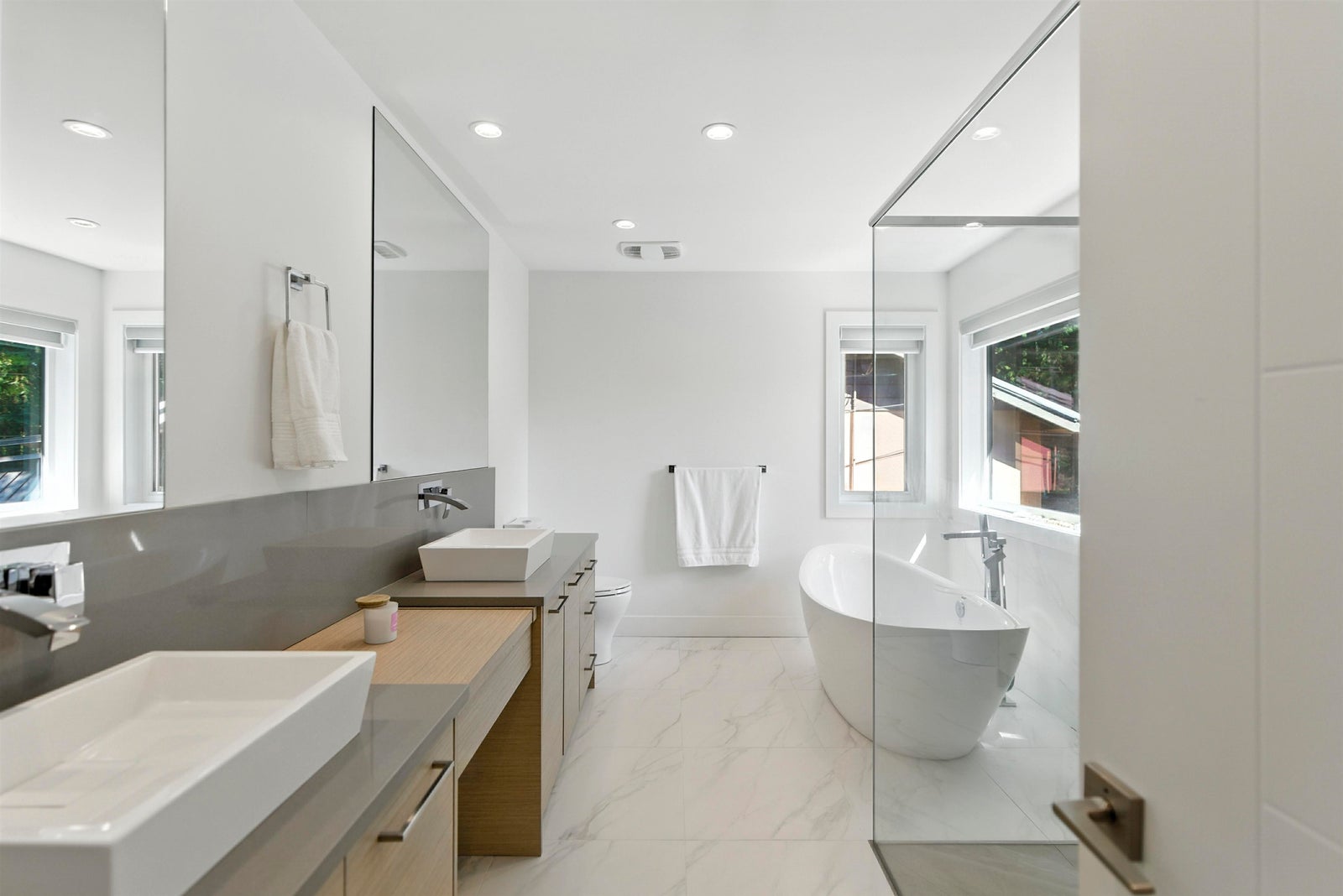 This incredible 4,918 sq ft modern masterpiece offers an exceptional floor plan & timeless design on a quiet cul-de-sac. The main level is built for entertaining, with soaring over height ceilings, open-concept living/dining/family room & a stunning kitchen feat commercial grade fridge/freezer, induction, 2 DW, coffee maker & massive island. Wok kitchen has a gas range, connects to laundry/mud-room & the attached 2 car garage. Upstairs features 4 spacious bedrooms, including a serene primary suite. The lower level includes a large rec room, full bar, 5th bedroom & steam shower for the main home, plus a legal 2-bdrm suite w/ private side entry—ideal for extended family or rental income. Flat, private, fully fenced back yard. Steps to Lynn Canyon, top-rated schools & Lynn Valley Centre.