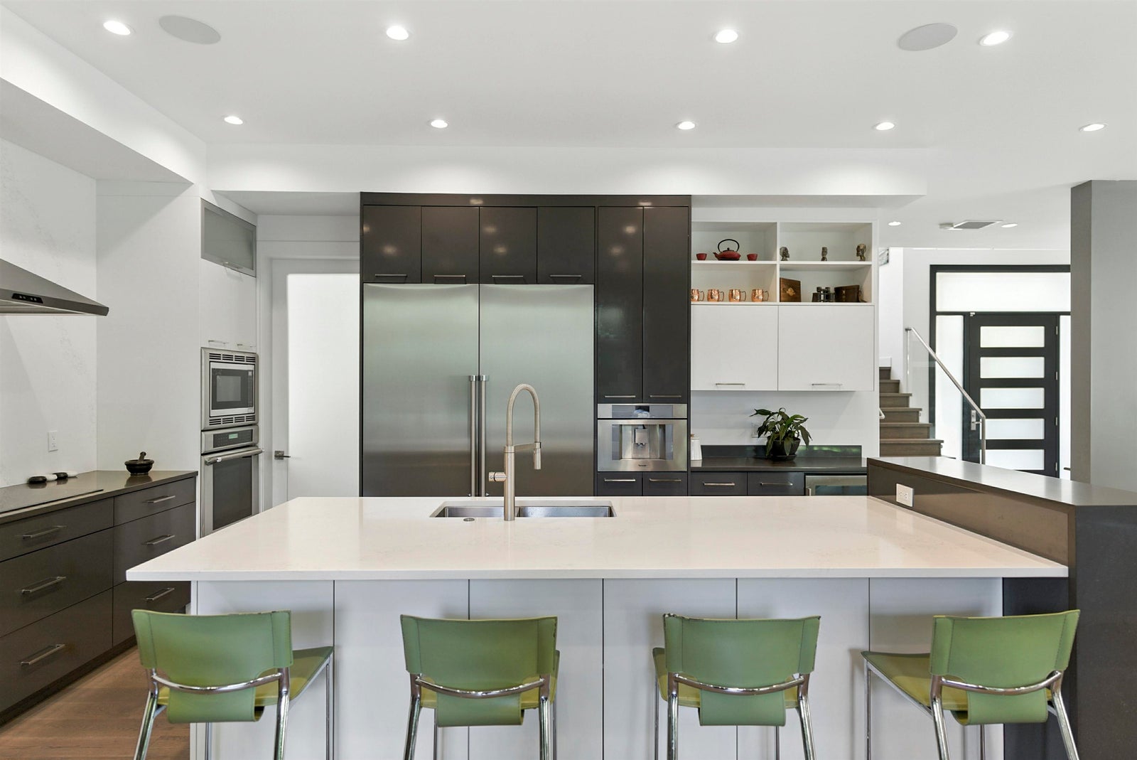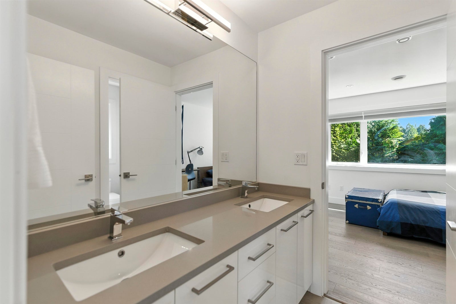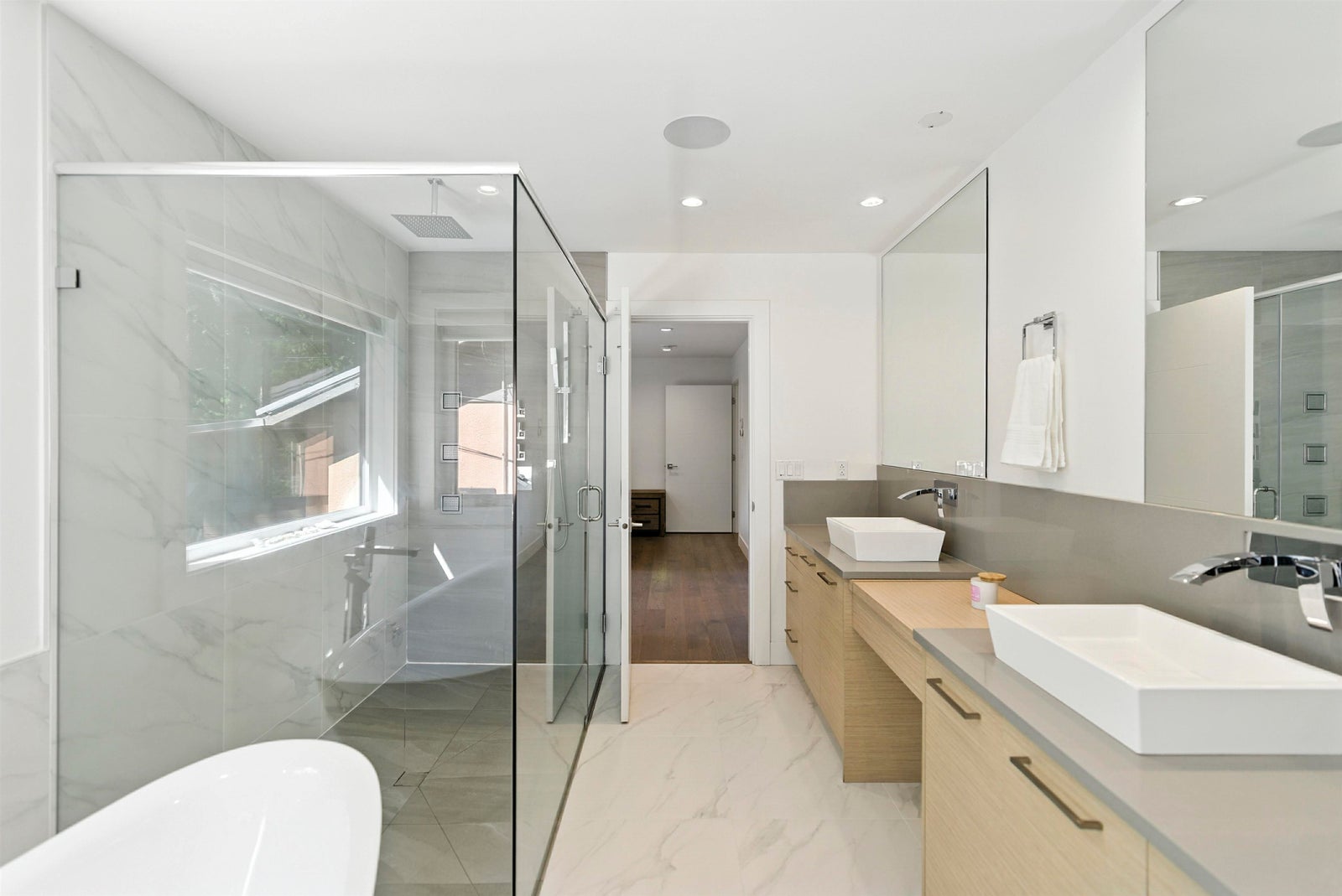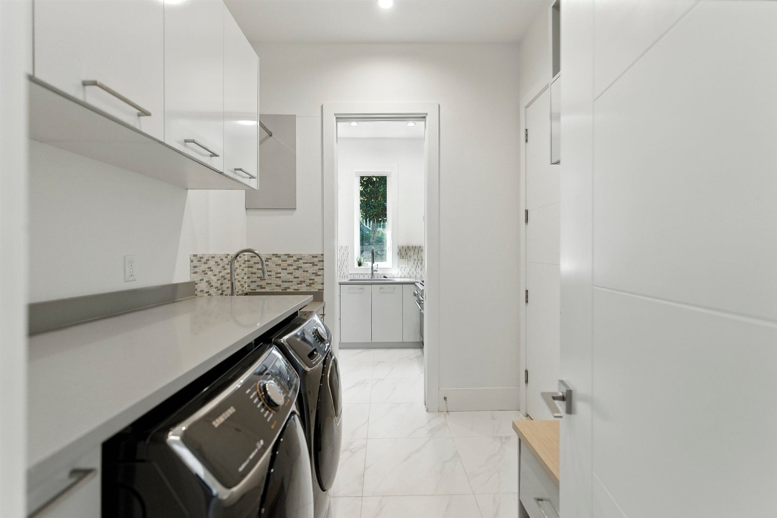 This incredible 4,918 sq ft modern masterpiece offers an exceptional floor plan & timeless design on a quiet cul-de-sac. The main level is built for entertaining, with soaring over height ceilings, open-concept living/dining/family room & a stunning kitchen feat commercial grade fridge/freezer, induction, 2 DW, coffee maker & massive island. Wok kitchen has a gas range, connects to laundry/mud-room & the attached 2 car garage. Upstairs features 4 spacious bedrooms, including a serene primary suite. The lower level includes a large rec room, full bar, 5th bedroom & steam shower for the main home, plus a legal 2-bdrm suite w/ private side entry—ideal for extended family or rental income. Flat, private, fully fenced back yard. Steps to Lynn Canyon, top-rated schools & Lynn Valley Centre.