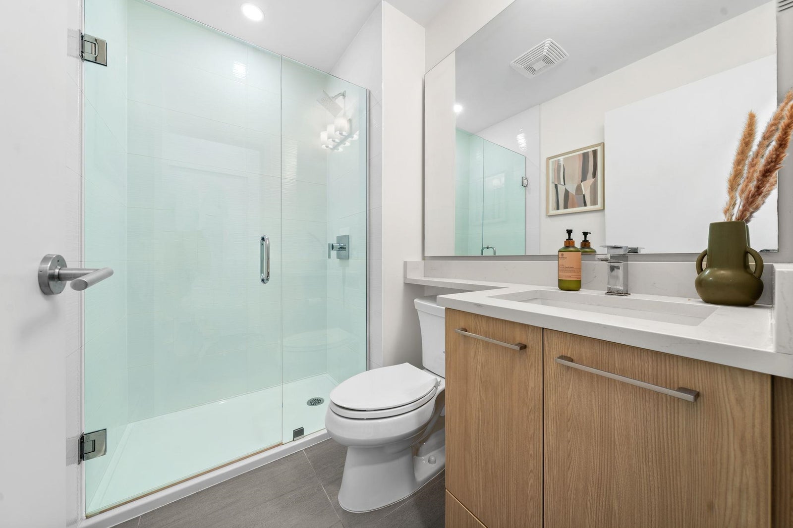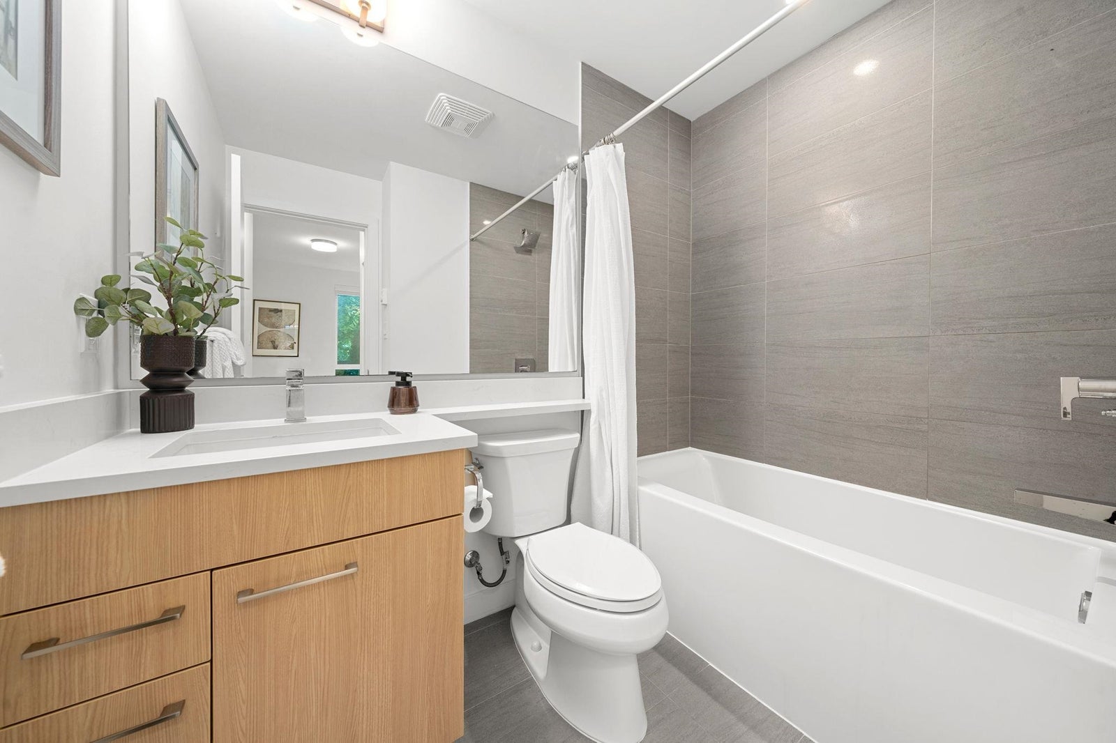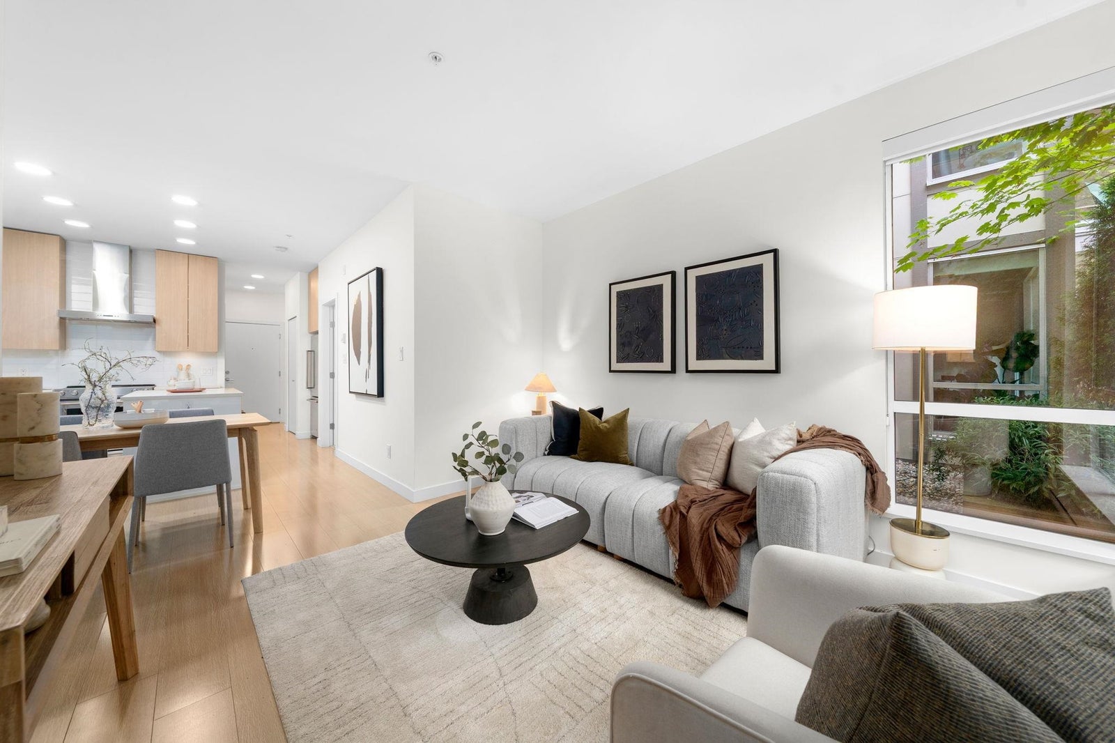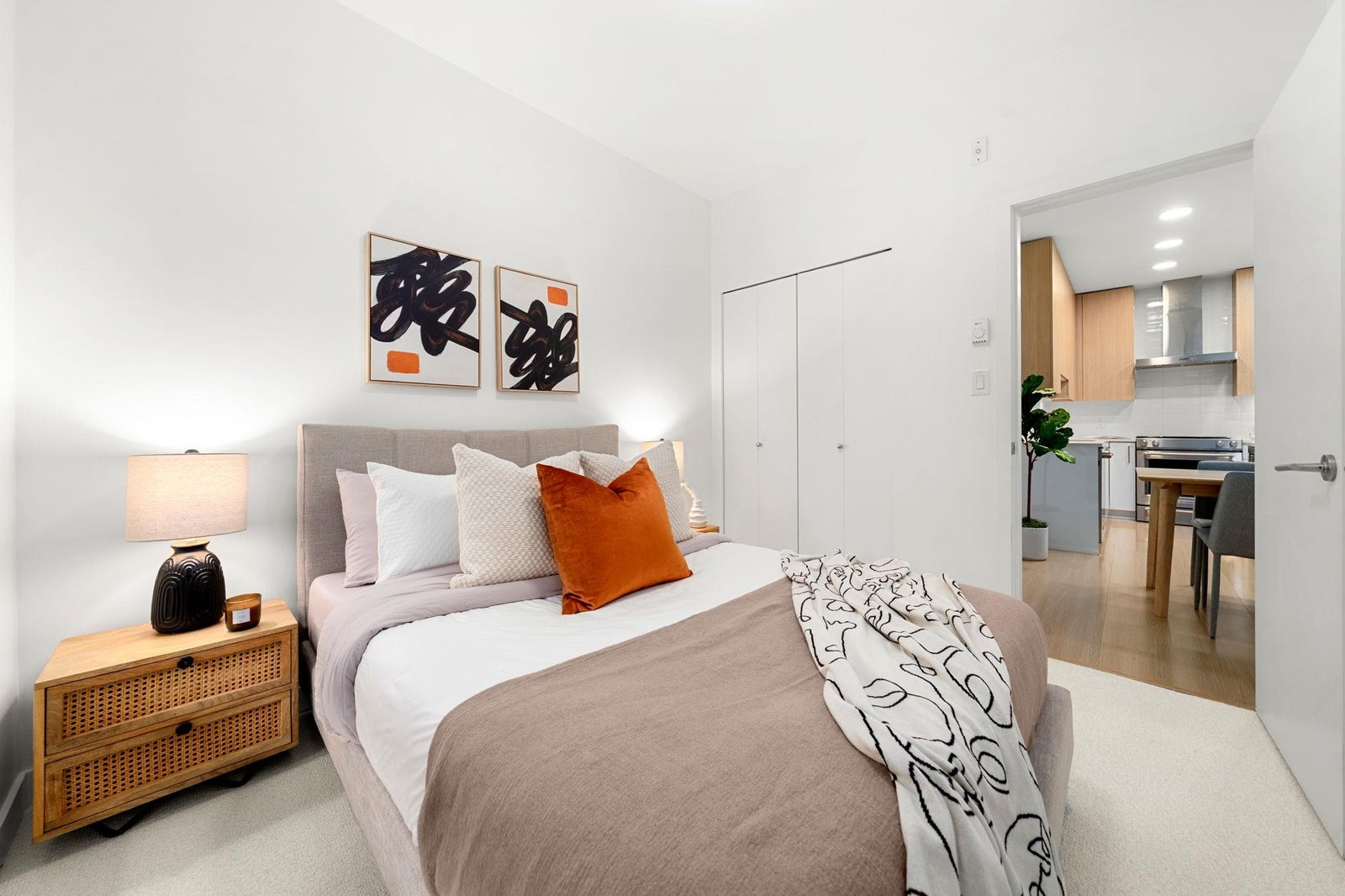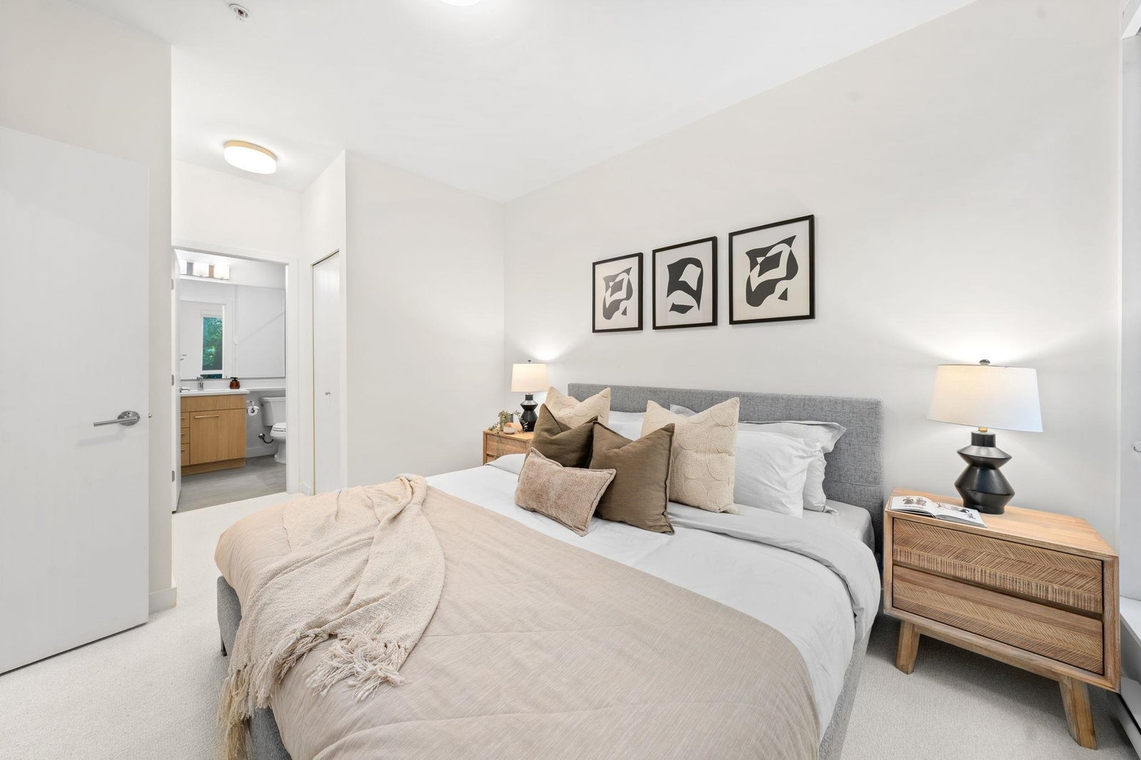 Discover modern living at Seasons by Ledingham McAllister. This exquisite two-bedroom, two-bathroom home, in near-new condition, is a quiet sanctuary tucked away on the building's most peaceful side. The open-concept floor plan seamlessly connects to an expansive, private, and gated covered patio—an ideal extension of your living space. The chef-inspired kitchen boasts sophisticated soft-closing white oak cabinets, elegant quartz countertops, and a premium stainless steel KitchenAid appliance suite. Situated in the heart of the dynamic Brentwood area, this home is a quick five-minute walk to the SkyTrain station, placing you at the centre of convenience. Amenities include a state-of-the-art exercise centre and a dedicated children's play area. **OPEN HOUSE OCTOBER 25TH 2-4pm.**