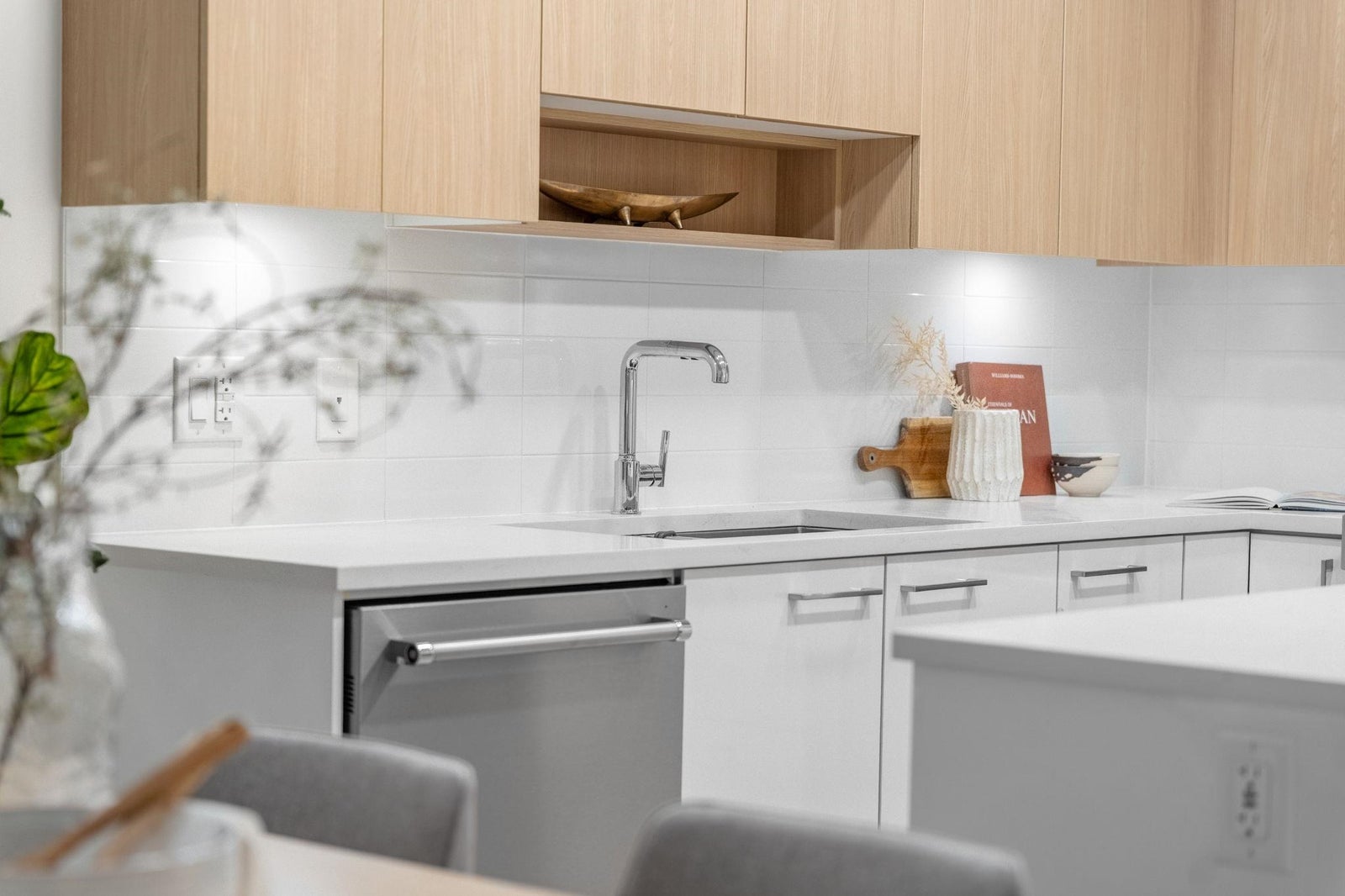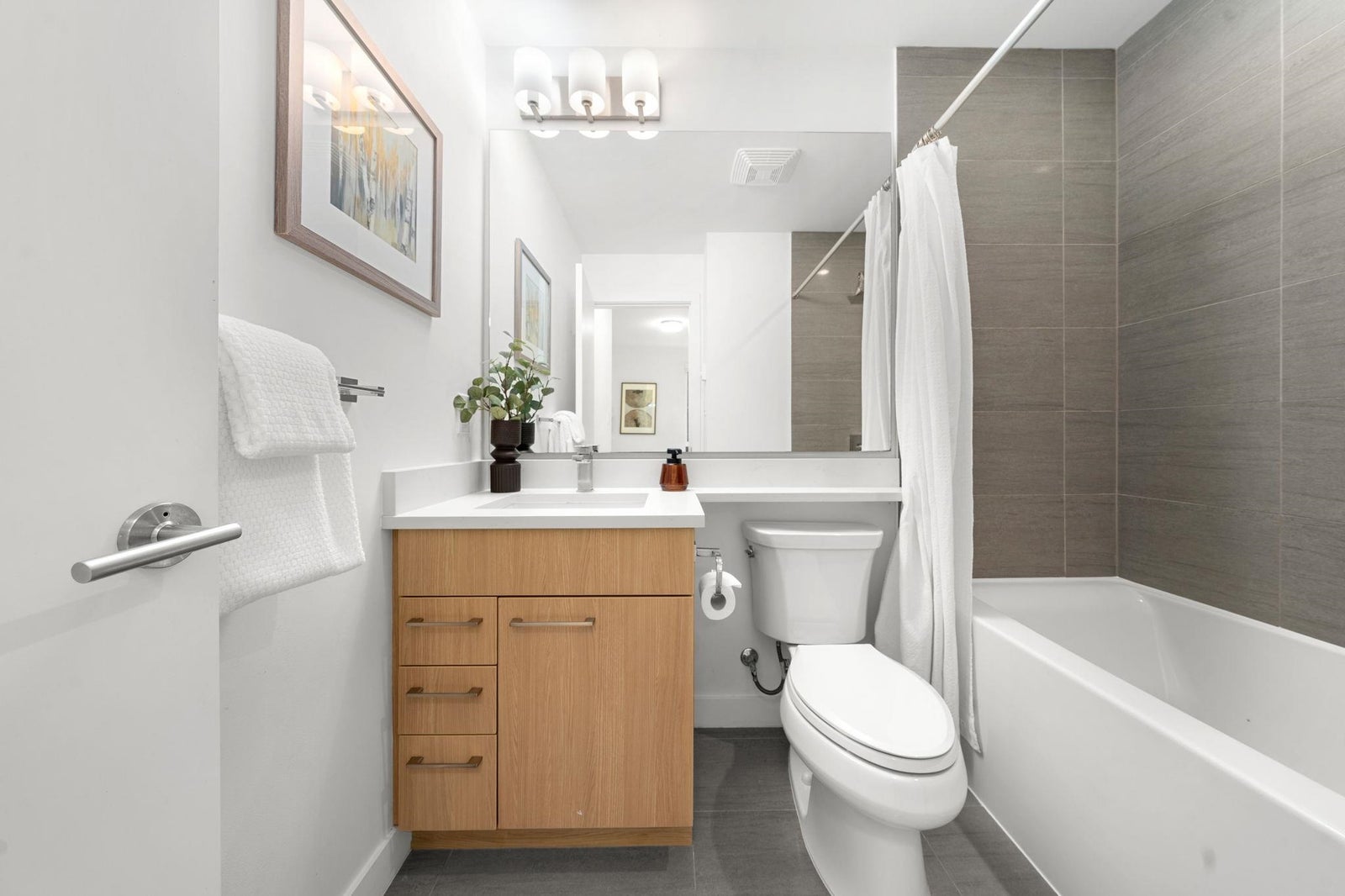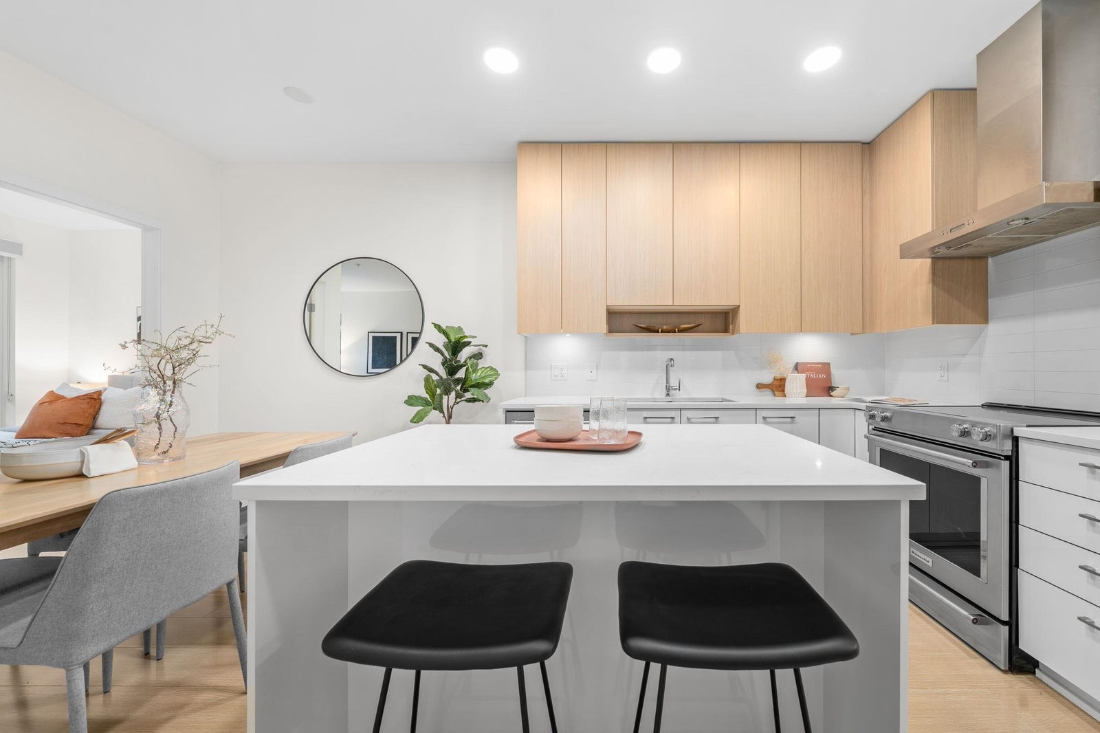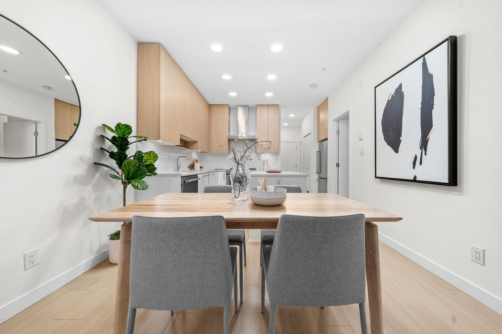 Discover modern living at Seasons by Ledingham McAllister. This exquisite two-bedroom, two-bathroom home, in near-new condition, is a quiet sanctuary tucked away on the building's most peaceful side. The open-concept floor plan seamlessly connects to an expansive, private, and gated covered patio—an ideal extension of your living space. The chef-inspired kitchen boasts sophisticated soft-closing white oak cabinets, elegant quartz countertops, and a premium stainless steel KitchenAid appliance suite. Situated in the heart of the dynamic Brentwood area, this home is a quick five-minute walk to the SkyTrain station, placing you at the centre of convenience. Amenities include a state-of-the-art exercise centre and a dedicated children's play area. **OPEN HOUSE OCTOBER 25TH 2-4pm.**