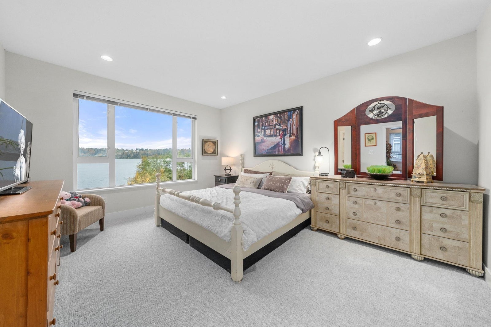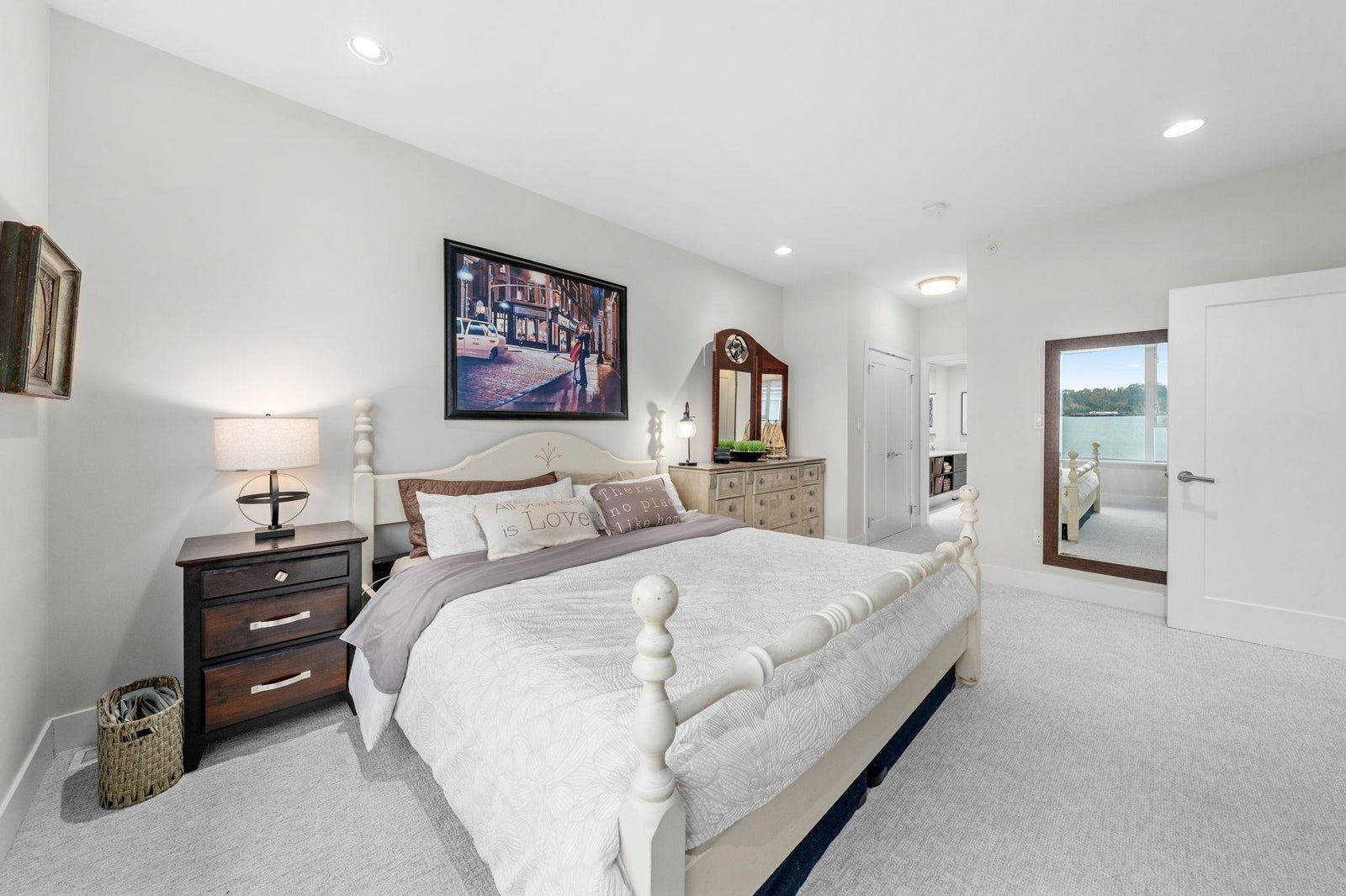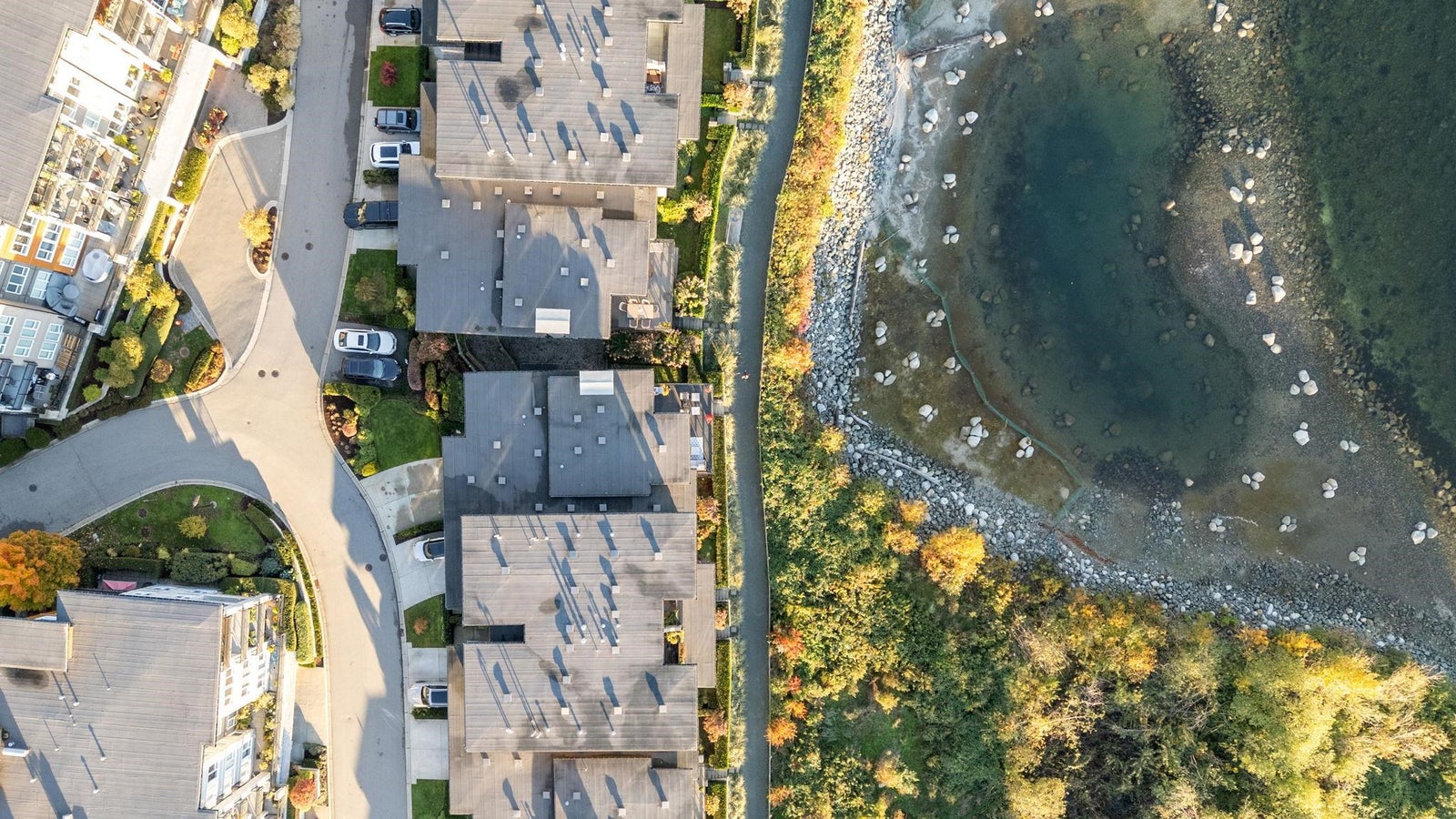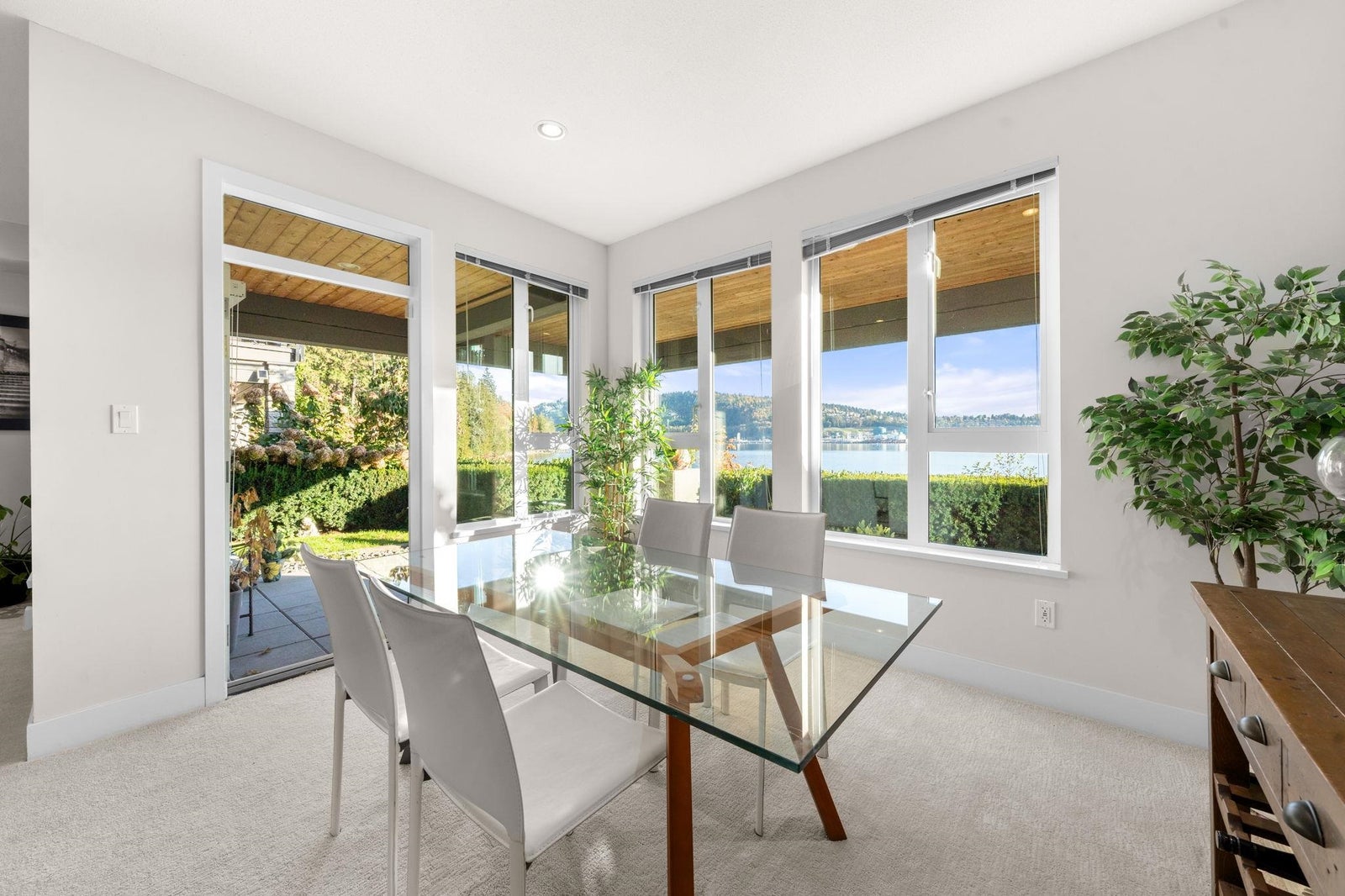 WATERFRONT LUXURY AT CATES LANDING. Experience the ultimate in North Shore waterfront living in this rarely available two-level 2,942 sqft townhome designed by renowned Keith Hemphill of RHA. Open-concept main w/ Bosch kitchen, stone counters, marble splash, 11’ ceilings, entertainment island + French doors seamlessly integrating oversized view deck. Large office, powder with limestone floor, 2-car garage + primary suite with panoramic views, spa-inspired 5-pc ensuite, and walk-in closet. Two more beds + 2 baths down, ample storage, full sized side-by-side laundry + large family room opening to private fenced yard w/ direct waterfront access. Radiant in-floor heating, gas fireplace, hardwood flrs and plush carpeting. Step onto the waterfront trail linking directly to Cates Park/Deep Cove.
